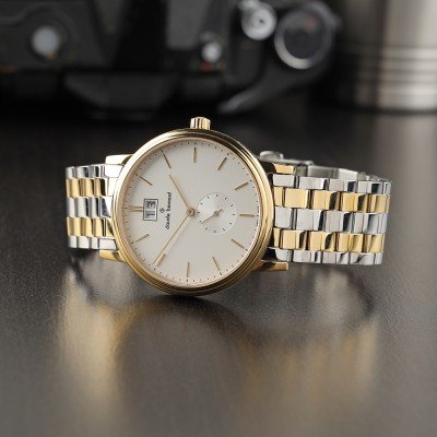 Cette montre Claude Bernard a un boîtier Inox 39 mm en diamètre et est équipée d'un bracelet Inox. Le boîtier contient un mouvement Ronda et la montre est dotée d'un cristal Saphire..