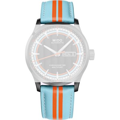 Ce bracelet de montre MIDOest fait de cuir et est attaché à la montre au moyen de Épingles à ressort à dégagement rapide. Le bracelet a une taille de 22 mm et se ferme au moyen d'un boucle déployante. Le bracelet est doté d'une monture droite, ce qui signifie qu'il convient à toutes les montres de la MIDO dotées d'une monture droite..