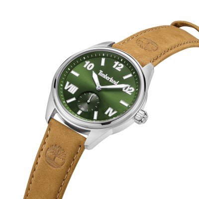 Cette montre Timberland a un boîtier Inox 43 mm en diamètre et est équipée d'un bracelet cuir. Le boîtier contient un mouvement Seiko Instruments Inc. et la montre est dotée d'un cristal Minéral..