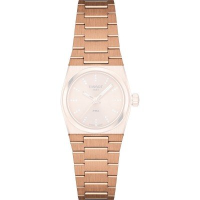 Ce bracelet de montre Tissotest fait de acier inoxydable et est attaché à la montre au moyen de Épingles à ressort à dégagement rapide. Le bracelet a une taille de 18 mm et se ferme au moyen d'un boucle papillon avec boutons poussoirs. Le bracelet n'a pas de support droit, ce qui signifie que ce bracelet convient uniquement aux montres énumérées ci-dessous.