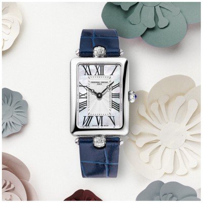 This Frederique Constant watch has a case made of stainless steel with a diameter of 20.7 mm and is fitted with a leather band. Inside the case lies a Frederique Constant movement and the watch features a Sapphire crystal.