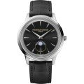 The name of the Classics Moneta Moonphase watch is derived from its fluted flange inspired by the fluted edge of a coin. At 37 mm and with a minimalist, yet functional design, the watch will appeal to both men and women. The accurate FC-206 quartz movement is based on a Ronda 706 and has a formidable 5-year battery life! The Classics Moneta Moonphase is available with a blue, black, or silver dial. It is worn on a calf leather strap with pin buckle for easy adjustment to your wrist size.