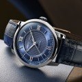 The Classics Premiere watch is a perfect blend of tradition and modern elegance. Roman numeral applied hour markers and Breguet hands emphasize the classic style of the watch. The sunburst minute circle and central section decorated with a fine guilloche pattern underscore the watches modernity and bring depth and texture. The watch is powered by an FC-301 (based on a G100 La Joux-Perret) movement, which offers a 68-hour power reserve. Through the transparent caseback, you can admire the Côtes de Genève pattern adorning the rotor. With a diameter of just 38.5 mm the Premiere is aimed at men, but we are sure this watch will appeal to ladies as well.
