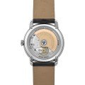 The Classics Premiere watch is a perfect blend of tradition and modern elegance. Roman numeral applied hour markers and Breguet hands emphasize the classic style of the watch. The sunburst minute circle and central section decorated with a fine guilloche pattern underscore the watches modernity and bring depth and texture. The watch is powered by an FC-301 (based on a G100 La Joux-Perret) movement, which offers a 68-hour power reserve. Through the transparent caseback, you can admire the Côtes de Genève pattern adorning the rotor. With a diameter of just 38.5 mm the Premiere is aimed at men, but we are sure this watch will appeal to ladies as well.