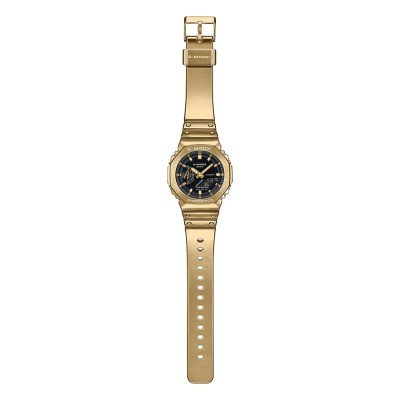 This new GM series is the first G-Shock watch to feature a Tough Silicone Band. This new type of band is made of flexible silicone that provides a comfortable fit around the wrist. The band is also extremely durable, thanks to a dual-layer construction of silicone with a urethane resin on top. This layer is given a metallic sheen by vapor deposition. G-Shock spent years working on this band, and you can see and feel it in everything. All watches in the GM series have a resin case with a strong metal casing and are available in silver and gold.