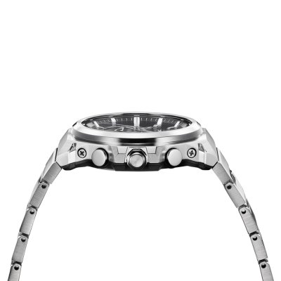 This G-Shock watch has a case made of Stainless steel and resin with a diameter of 44 mm and is fitted with a stainless steel band. Inside the case lies a Casio movement and the watch features a Mineral crystal.