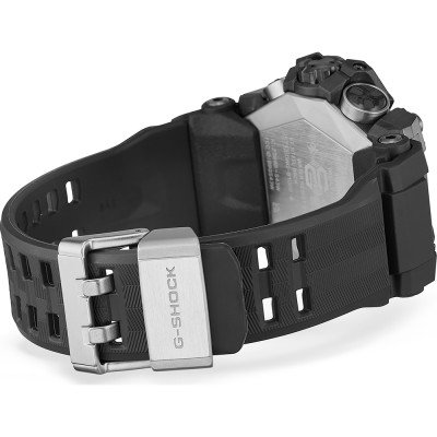 This G-Shock watch has a case made of Stainless steel and carbon with a diameter of 56 mm and is fitted with a Resin band. Inside the case lies a Casio movement and the watch features a Sapphire crystal.