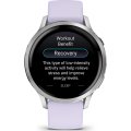 This Garmin watch has a case made of Fibre-reinforced Resin with a diameter of 41 mm and is fitted with a rubber band. Inside the case lies a Garmin movement and the watch features a Corning Gorilla Glass 3 crystal.