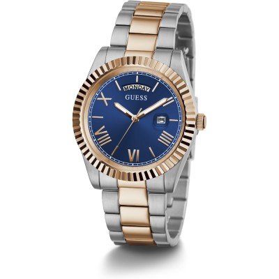 This Guess watch has a case made of stainless steel with a diameter of 42 mm and is fitted with a stainless steel band. Inside the case lies a Seiko Instruments Inc. movement and the watch features a Mineral crystal.