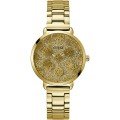 This Guess watch has a case made of stainless steel with a diameter of 38 mm and is fitted with a stainless steel band.