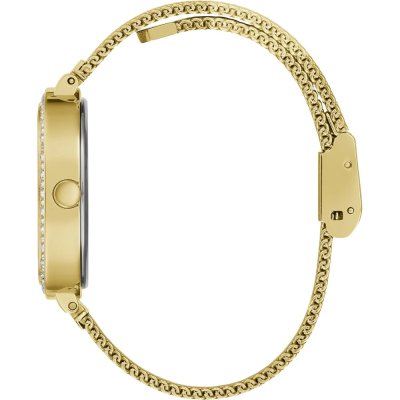 This Guess watch has a case made of stainless steel with a diameter of 32 mm and is fitted with a stainless steel band. Inside the case lies a Seiko movement and the watch features a Mineral crystal.