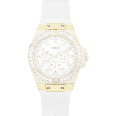 This Guess watch strap is made of silicone and is attached to the watch by means of pushpins. The band has a width of 24 mm and is closed by means of a buckle. The strap has no straight mount which means that this strap is only suitable for the watches listed below.