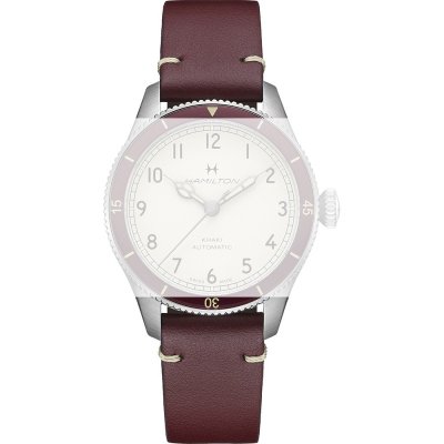 This Hamilton watch strap is made of leather and is attached to the watch by means of pushpins. The band has a width of 18 mm and is closed by means of a buckle. The strap has a straight mount which means that this strap is suitable for all Hamilton watches with a straight mount.