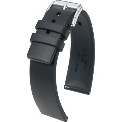 This Hirsch watch strap is made of rubber and is attached to the watch by means of quick release pushpins. The band has a width of 18 mm and is closed by means of a buckle. The strap has a straight mount which means that this strap is suitable for all watches with a straight mount.