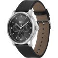 This Hugo Boss watch has a case made of stainless steel with a diameter of 44 mm and is fitted with a leather band. Inside the case lies a Seiko Instruments Inc. movement and the watch features a Mineral crystal.