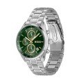 This Hugo Boss watch has a case made of stainless steel with a diameter of 40 mm and is fitted with a stainless steel band. Inside the case lies a Seiko Instruments Inc. movement and the watch features a Mineral crystal.