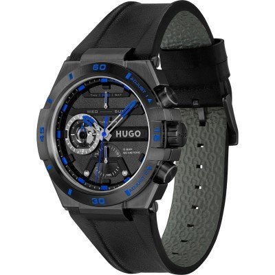 This Hugo Boss watch has a case made of stainless steel with a diameter of 46 mm and is fitted with a leather band. Inside the case lies a Seiko Instruments Inc. movement and the watch features a Mineral crystal.