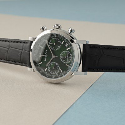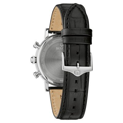 Questo orologio Bulova ha una cassa in Inox con un diametro di 39 mm ed è dotato di un cinturino in Pelle. All'interno della cassa si trova un movimento di Miyota e l'orologio è dotato di un cristallo di Zaffiro.