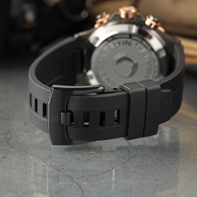 Questo orologio Edox ha una cassa in Inox con un diametro di 43 mm ed è dotato di un cinturino in gomma. All'interno della cassa si trova un movimento di Ronda e l'orologio è dotato di un cristallo di Zaffiro.