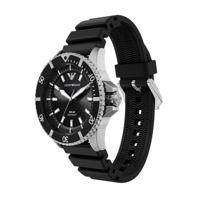 Questo orologio Emporio Armani ha una cassa in Inox con un diametro di 42 mm ed è dotato di un cinturino in gomma. All'interno della cassa si trova un movimento di Miyota e l'orologio è dotato di un cristallo di Minerale.