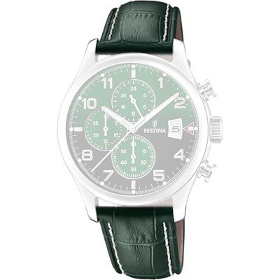 Questo cinturino Festina è fatto in pelle ed è collegato all'orologio per mezzo di perni a molla. Il cinturino ha una larghezza di 21 mm e si chiude a mezzo di fibbia. Il cinturino ha un attacco dritto, il che significa che questo cinturino è adatto a tutti gli orologi di Festina con attacco dritto.