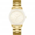 Questo cinturino Guess è fatto in acciaio inox ed è collegato all'orologio per mezzo di perni a molla. Il cinturino ha una larghezza di 20 mm e si chiude a mezzo di chiusura deployante con bottoni. Il cinturino non ha montatura dritta, il che significa che questo cinturino è adatto solo per gli orologi elencati di seguito.