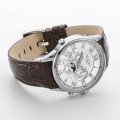 Questo orologio Roamer ha una cassa in Inox con un diametro di 43 mm ed è dotato di un cinturino in Pelle. All'interno della cassa si trova un movimento di Ronda e l'orologio è dotato di un cristallo di Zaffiro.
