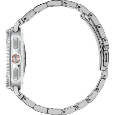 Questo orologio Samsung ha una cassa in Alluminio con un diametro di 46 mm ed è dotato di un cinturino in Cuoio su silicone. All'interno della cassa si trova un movimento di Samsung e l'orologio è dotato di un cristallo di Zaffiro.