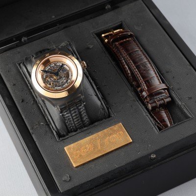 Sono state realizzate solo 100 copie numerate di questo orologio Swatch unico con lunetta in vero oro. Con il suo raffinato design semi-tourbillon, questo orologio incarna la perfetta combinazione di arte e precisione. L'orologio Diaphane One Turning Gold è più di un semplice orologio; È un inno alla ricca tradizione dell'orologeria svizzera e al carattere innovativo di Swatch. Sottilmente visibile nello splendido quadrante, il meccanismo semi-tourbillon è progettato per migliorare la precisione e conferire all'orologio un movimento aggraziato che incanta l'occhio. Ogni pezzo di questo orologio esclusivo è realizzato a mano dai maestri orologiai del Gruppo Swatch con attenzione ai dettagli e alla maestria artigianale. Questo bellissimo orologio vintage del 2006 attirerà senza dubbio l'attenzione. Sia che lo indossi come un regalo personale o come una dichiarazione audace. L'orologio, edizione numero 064, viene fornito con scatola e documenti originali e garanzia HWG di 6 mesi. L'edizione limitata lo rende un prezioso oggetto da collezione che può essere trasmesso con orgoglio alle generazioni future