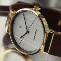 This Jacob Jensen watch has a case made of stainless steel with a diameter of 35 mm and is fitted with a rubber band. Inside the case lies a Ronda movement and the watch features a Mineral crystal.