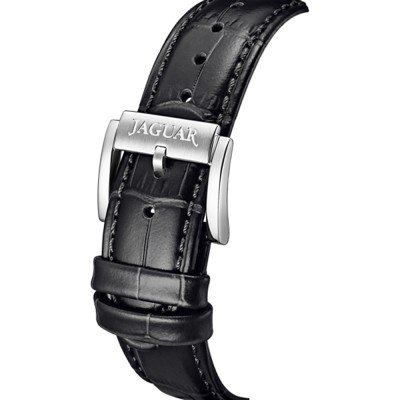 This Jaguar watch has a case made of stainless steel with a diameter of 45 mm and is fitted with a leather band. Inside the case lies a ETA movement and the watch features a Sapphire crystal.