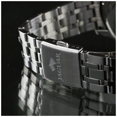 This Jaguar watch has a case made of stainless steel with a diameter of 40 mm and is fitted with a stainless steel band. Inside the case lies a Ronda movement and the watch features a Sapphire crystal.