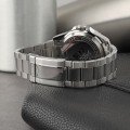This Jaguar watch has a case made of stainless steel with a diameter of 43 mm and is fitted with a stainless steel band. Inside the case lies a ETA movement and the watch features a Sapphire crystal.