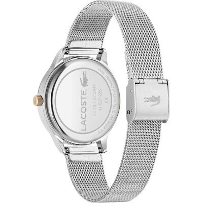 This Lacoste watch has a case made of stainless steel with a diameter of 34 mm and is fitted with a stainless steel band. Inside the case lies a Seiko movement and the watch features a Mineral crystal.