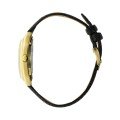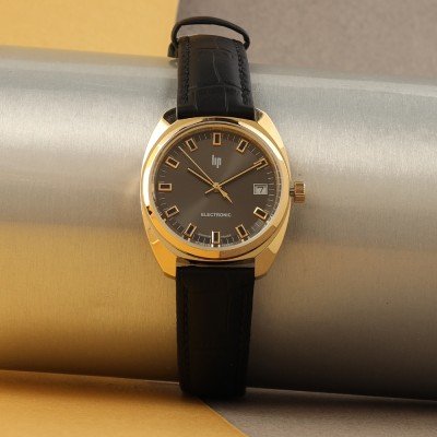 This LIP watch has a case made of stainless steel with a diameter of 35 mm and is fitted with a leather band. Inside the case lies a Ronda movement and the watch features a Mineral crystal.
