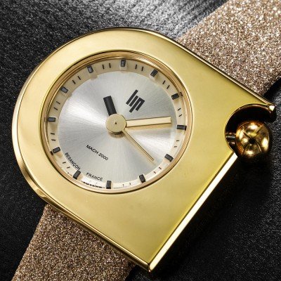 The Mach 2000 watch was designed for LIP by French industrial designer Roger Tallon. A prolific artist, Tallon is best known for his design of the French high speed train TGV. In 1975 he brought his knowledge of modern materials to LIP and created this now iconic watch. The Mach 2000 design keeps all the particulars that make a watch a watch, but its asymmetrical shape and atypical design combined with three primary colours breaks with the traditional-watch concept, making the Mach 2000 a truly singular and much sought after watch.