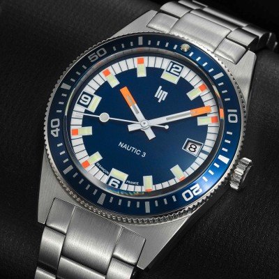 The Nautic 3 was has been reissued in a version very close to the original of the 1970s. This new version is an automatic watch powered by the famous Franco-Swiss G100 calibre from the La Joux-Perret manufacture, entirely assembled in Besançon, and offering a comfortable 68-hour power reserve.