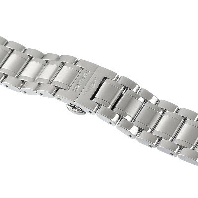 This Longines watch strap is made of stainless steel and is attached to the watch by means of pushpins. The band has a width of 21 mm and is closed by means of a butterfly clasp with push buttons. The strap has no straight mount which means that this strap is only suitable for the watches listed below.