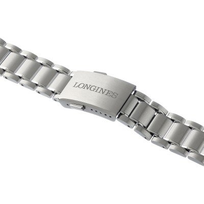 This Longines watch strap is made of stainless steel and is attached to the watch by means of quick release pushpins. The band has a width of 19 mm and is closed by means of a deployment clasp with push buttons. The strap has no straight mount which means that this strap is only suitable for the watches listed below.