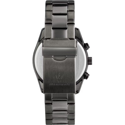 This Maserati watch has a case made of stainless steel with a diameter of 43 mm and is fitted with a stainless steel band. Inside the case lies a Seiko Instruments Inc. movement and the watch features a Mineral crystal.