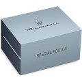 This Maserati watch has a case made of stainless steel with a diameter of 43 mm and is fitted with a stainless steel band. Inside the case lies a Miyota movement and the watch features a Mineral crystal.