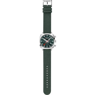 This Mondaine watch has a case made of stainless steel with a diameter of 41 mm and is fitted with a textile band. Inside the case lies a Ronda movement and the watch features a Mineral crystal.