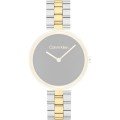 Dit Calvin Klein horlogebandje is gemaakt van roestvrij staal en wordt aan het horloge bevestigd door middel van stalen pennen. De band heeft een breedte van 13 mm en wordt gesloten door middel van een vouwsluiting met drukknoppen. De band heeft geen rechte aanzet wat betekent dat deze band alleen geschikt is voor de horloges die hieronder worden vermeld.