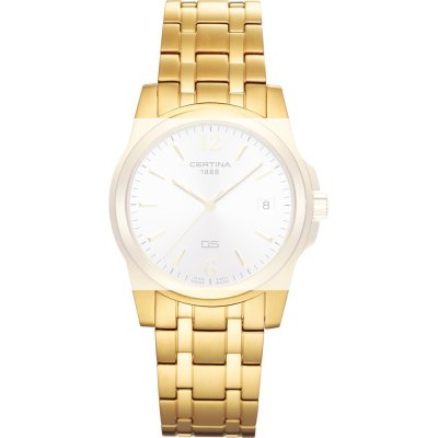 Dit Certina horlogebandje is gemaakt van roestvrij staal en wordt aan het horloge bevestigd door middel van bandpennen. De band heeft een breedte van 20 mm en wordt gesloten door middel van een vouwsluiting met drukknoppen. De band heeft geen rechte aanzet wat betekent dat deze band alleen geschikt is voor de horloges die hieronder worden vermeld.