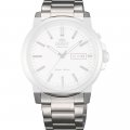 Dit Orient horlogebandje is gemaakt van roestvrij staal en wordt aan het horloge bevestigd door middel van bandpennen. De band heeft een breedte van 22 mm en wordt gesloten door middel van een vouwsluiting met drukknoppen. De band heeft geen rechte aanzet wat betekent dat deze band alleen geschikt is voor de horloges die hieronder worden vermeld.