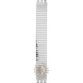 Dit Swatch horlogebandje is gemaakt van roestvrij staal en wordt aan het horloge bevestigd door middel van stalen pennen. De band heeft een breedte van 19.7 mm. De band heeft geen rechte aanzet wat betekent dat deze band alleen geschikt is voor de horloges die hieronder worden vermeld.