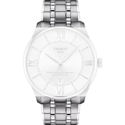 Dit Tissot horlogebandje is gemaakt van roestvrij staal en wordt aan het horloge bevestigd door middel van bandpennen. De band heeft een breedte van 22 mm en wordt gesloten door middel van een vouwsluiting met drukknoppen. De band heeft geen rechte aanzet wat betekent dat deze band alleen geschikt is voor de horloges die hieronder worden vermeld.