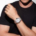 This Olympic watch has a case made of stainless steel with a diameter of 40 mm and is fitted with a stainless steel band. Inside the case lies a Miyota movement and the watch features a Sapphire crystal.