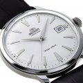 This Orient watch has a case made of stainless steel with a diameter of 40.5 mm and is fitted with a leather band. Inside the case lies a Orient movement and the watch features a Mineral crystal.