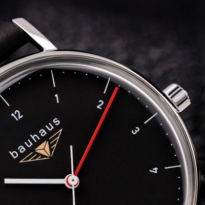 Zegarek marki Bauhaus ma stal chirurgiczna kopertę 41 mm średnicy i jest wyposażony w pasek z materiału skóra. Wewnątrz koperty jest mechanizm Ronda i zegarek ma także szkiełko K1 Mineral.